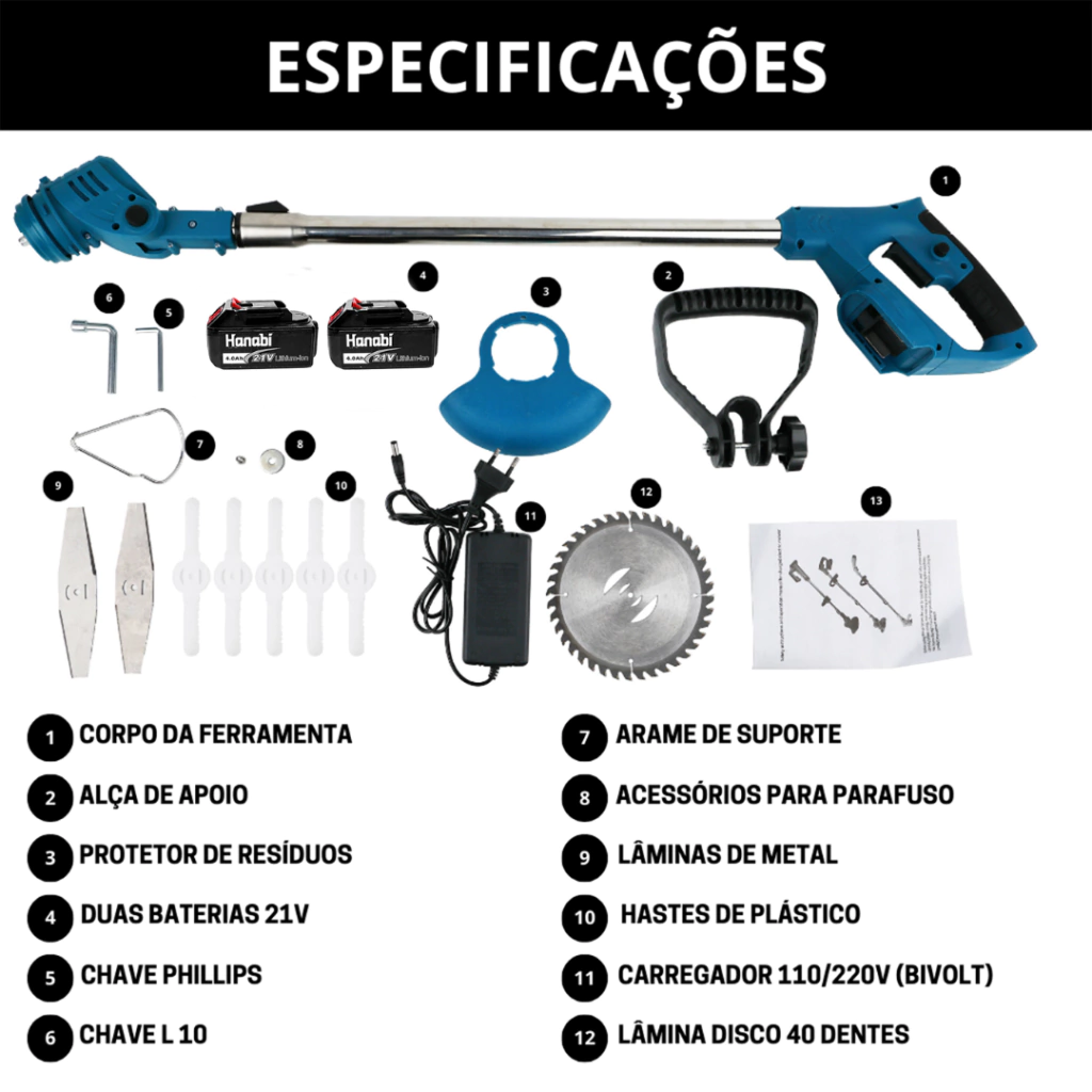 Roçadeira a Baterias 21V – Potência e Praticidade para Seu Jardim!