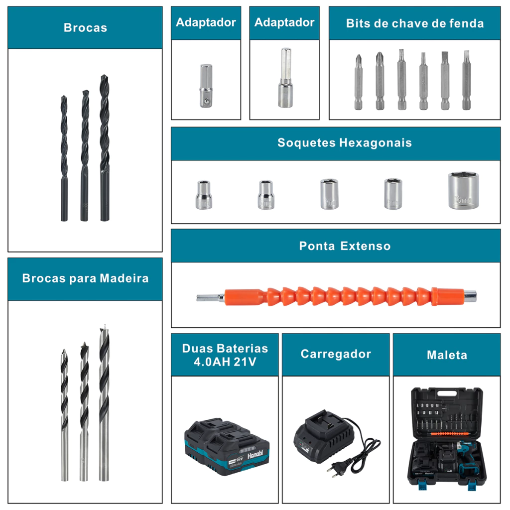 Garanta a sua Furadeira de Impacto Elétrica 21V Brushless agora mesmo! Transforme seus projetos com potência, praticidade e conforto.
