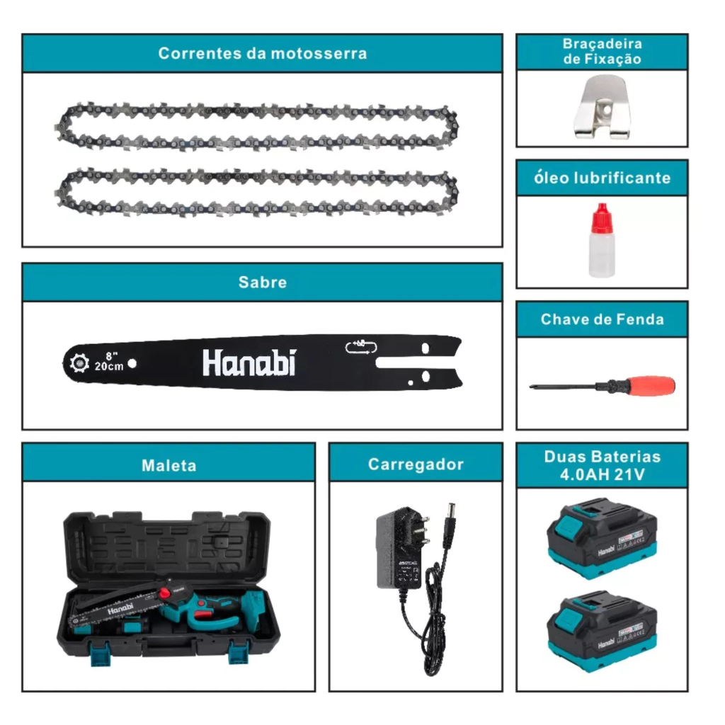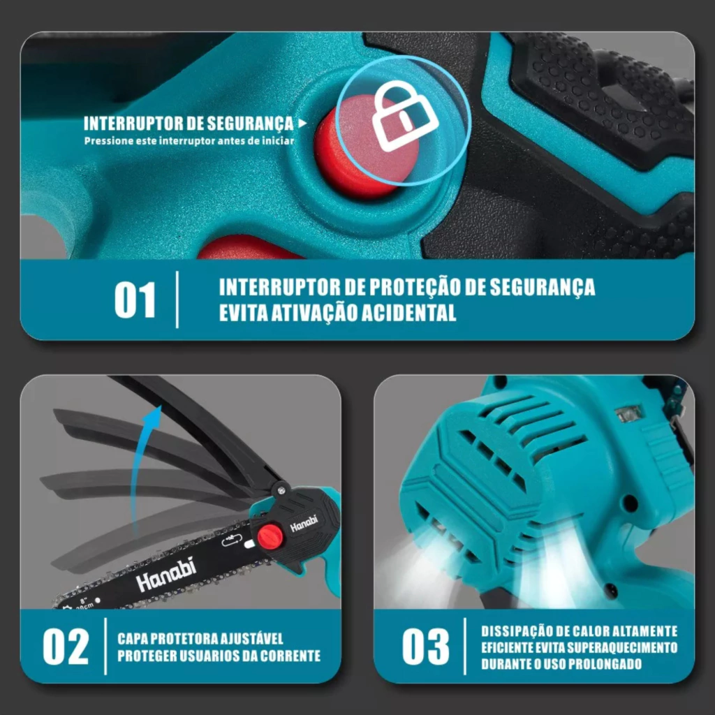 Motosserra Elétrica Portátil Hanabi 8 Polegadas – Potência e Praticidade Sem Fio