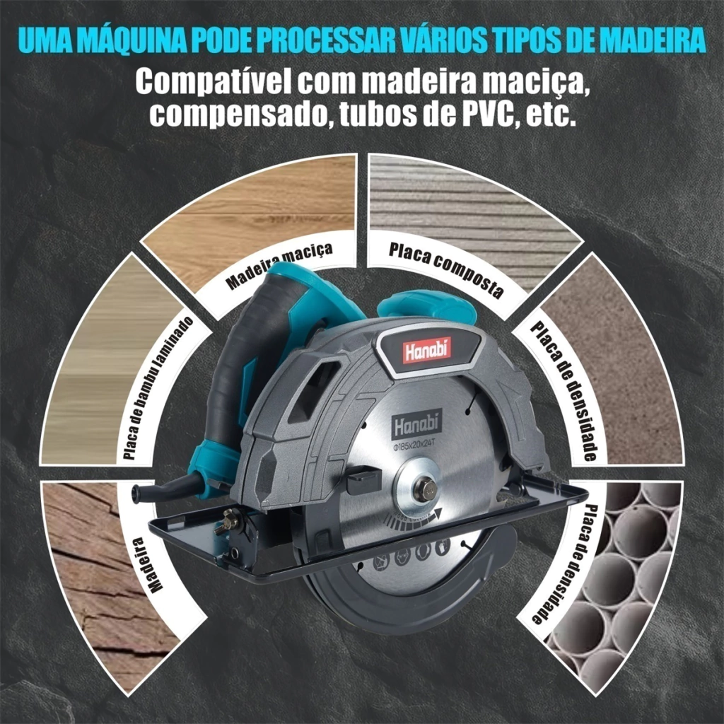 Eleve a qualidade dos seus cortes com a Serra Circular Elétrica 1800W Hanabi. Potência, precisão e segurança para seus projetos. Adquira agora e tenha a ferramenta que vai transformar seu trabalho!